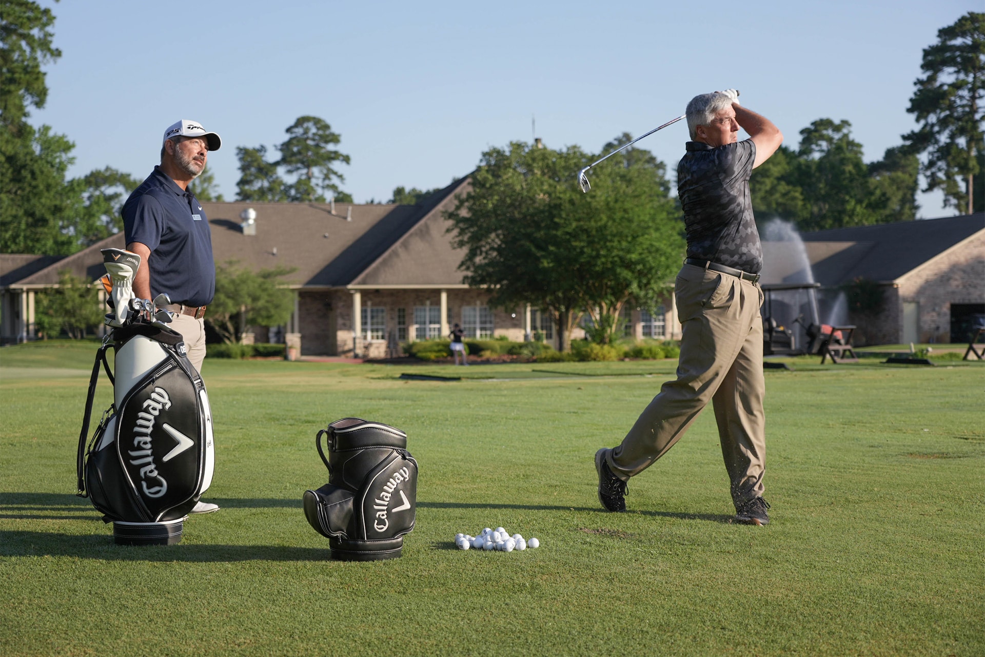 At Lake Windcrest Golf Club in Magnolia, Texas, we provide a comprehensive golf experience, featuring golf lessons (individual or group instruction) and club fittings. Our Magnolia golf lessons cater to all skill levels, from beginners to scratch golfers. Whether you're embarking on your golf journey or looking to enhance your skills, our programs are tailored to meet your needs. Explore our "Game On" program designed for beginners, and choose from our array of lesson packages for all player levels. Our Men’s and Women’s Golf Clinics cover topics like Grip, Aim, Stance, Swing, Putting, Chipping, Pitching, Wedges, Sand Play, Irons, Fairway Woods, and Drivers.