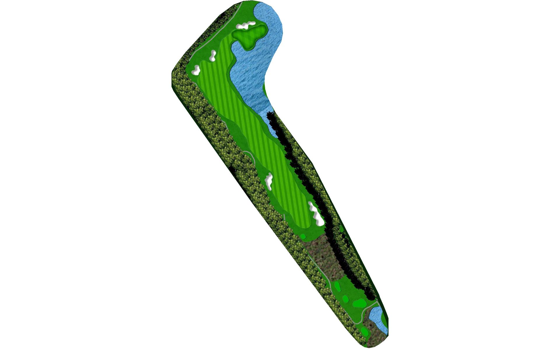 The opening hole is a short par 4 that requires players to hit a blind tee shot over a ridge. Finding the fairway is crucial as it will set up a birdie opportunity. When hitting the approach shot, players must be careful to avoid the pond along the left side of this green that runs away.